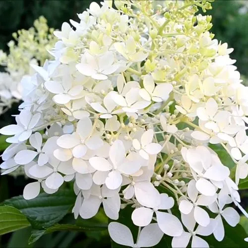 Один из главных плюсов этого сорта - его метелевидные соцветия, которые имеют округло-конусовидную форму и крупный размер. Вначале цветки белого цвета, но со временем они медленно становятся розовато-фиолетовыми. Великолепная окраска цветков будет привлекать восхищенные взгляды на протяжении всего летнего периода.