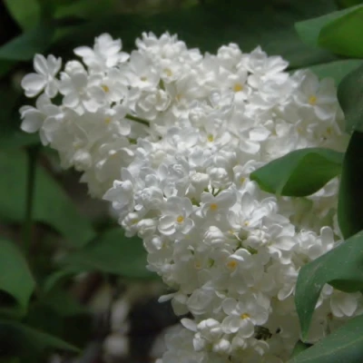 Главная гордость сорта — крупные махровые цветки. Цветение начинается в конце мая и продолжается до середины июня. Бутоны плотные, белого цвета с лёгким кремовым оттенком в основании, распускаются в крупные соцветия длиной 26–33 см, которые визуально кажутся пышными и тяжёлыми от густоты лепестков. Каждый цветок диаметром до 3,8 см, с множеством нежных лепестков, формирует плотную, многослойную кисть. Соцветия слегка поникают, создавая эффект воздушной объёмности, а их белоснежный цвет контрастирует с насыщенной зеленью листвы. Аромат мягкий, приятный и ненавязчивый, он распространяется вокруг куста, наполняя сад лёгким ароматным акцентом.