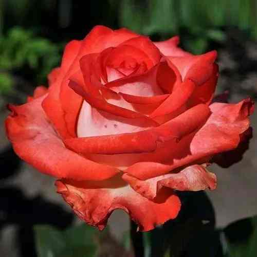 Роза Блаш - это роза, которая относится к чайно-гибридным сортам. Куст вырастает до 120см в высоту, и до 80см в ширину, шипы практически отсутствуют. Листья крупные, немного глянцевые, темно-зеленого цвета. Цветки махровые, молочного цвета, с яркими алыми краями диаметром до 12см. Образовавшиеся бутоны имеют розовый цвет, и правильную, бокаловидную форму. Но, распускаясь, они выгорают с боков практически до белого цвета. Цветение обильное, повторное. На одном стебле бывает только один цветок. Аромат легкий и нежный.