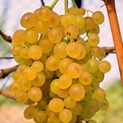 Грозди цилиндроконической формы имеют средний вес 350–450 граммов, но при хорошем уходе достигают 700 граммов. Янтарные овальные ягоды весом около 3 граммов обладают плотной, мясисто-сочной мякотью. За свой сложный фруктовый аромат сорт получил высочайшую дегустационную оценку в 9,1 балла. Огромным преимуществом является I–II класс бессемянности: это идеальный выбор для детского питания и приготовления изысканных десертов.