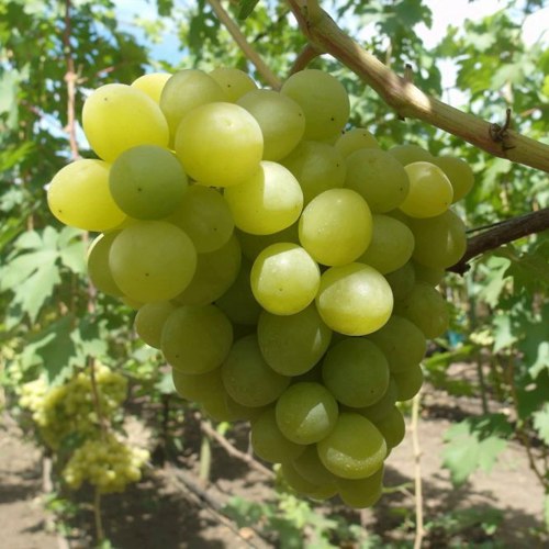 Уже в первый сезон лоза пойдёт в рост. На второй год вы увидите первые ягоды, а на третий — соберёте полноценный урожай. Купить виноград Валёк стоит, если вы мечтаете о раннем лете собственных ягод. Представьте: конец июля, солнечный день и сочная мускатная гроздь прямо с вашей лозы. Сорт отлично подходит для дачи — крупные грозди украсят любой участок, а аромат наполнит сад теплом и летом. Для небольшого бизнеса Валёк тоже интересен: ранние сроки созревания позволяют выйти на рынок раньше конкурентов, а красивые плотные грозди привлекают покупателей. Купить саженцы винограда Валёк у нас — значит получить здоровый посадочный материал с гарантией сортовой чистоты и подробной инструкцией по уходу. Укройте кусты осенью — и уже следующим летом ваш сад порадует первыми мускатными гроздями нового сезона.